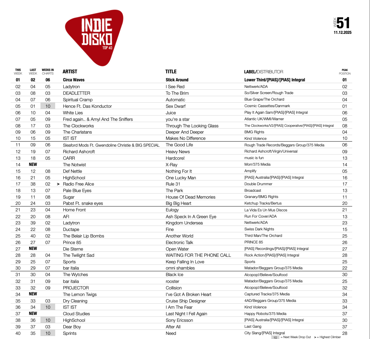 INDIE DISKO TOP 40